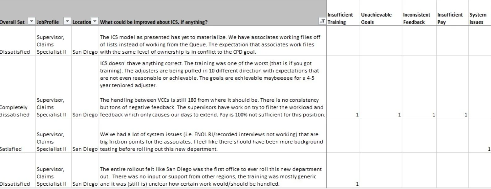 Understand pain points and dissatisfiers in the ICS adjuster experience