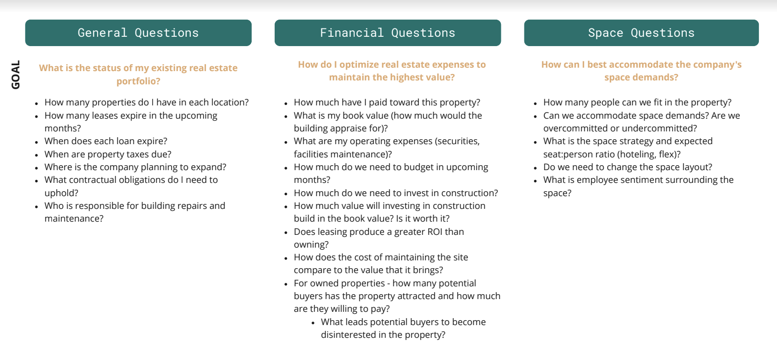 To build out our team’s empathy for the role, I also created a portfolio manager persona and isolated questions that they seek to answer throughout the process of evaluating properties within a portfolio.
